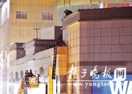 昨天下午5點(diǎn)多鐘,在新街口萬(wàn)達(dá)廣場(chǎng)逛街的市民們發(fā)現(xiàn)萬(wàn)達(dá)的樓頂竟然有一個(gè)穿著紅衣服的女子坐在平臺(tái)邊緣,稍不注意,就有可能墜樓。有熱心市民向警方報(bào)警后,“110”特巡警以及轄區(qū)淮海路派出所的民警迅速趕到了現(xiàn)場(chǎng)展開(kāi)營(yíng)救。消防部門(mén)也隨即接到命令到現(xiàn)場(chǎng)增援,消防官兵在地面上將氣墊打開(kāi),防止意外發(fā)生。一輛云梯消防車也在事發(fā)后半小時(shí)內(nèi)趕到了現(xiàn)場(chǎng)。