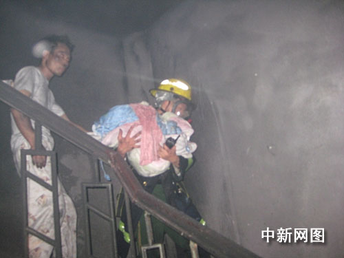 了解情況后,指揮員立即命令官兵迅速展開滅火營(yíng)救行動(dòng),鋪設(shè)兩支水槍進(jìn)行滅火,及時(shí)消滅樓梯口的火勢(shì)和濃煙,兩名官兵佩戴空氣呼吸器順著樓梯間深入樓內(nèi)救人,將13名被困人員分批救出,其中有一個(gè)2個(gè)月的嬰兒。經(jīng)過1個(gè)多小時(shí)的奮勇戰(zhàn)斗,大火被撲滅,被困的居民也全部被救出。