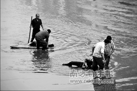 隨后,吳松濤也翻過(guò)護(hù)欄跳下水。