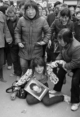 3月13日上午9時(shí),鞭炮清脆炸響,不是因?yàn)橄矐c而是送喪。運(yùn)送徐梗榮尸體的面包車從陜西省丹鳳縣醫(yī)院駛出又停下。徐的母親及大姐癱坐地上,放聲慟哭。她們不滿縣公安局不兌現(xiàn)承諾:出動(dòng)一輛警車在前開(kāi)道。一番僵持,一輛巡警車終于開(kāi)來(lái),徐梗榮,這個(gè)19歲少年的尸體在警車開(kāi)道下,被送回40公里外的寺坪村家里。