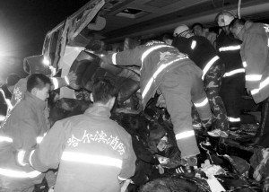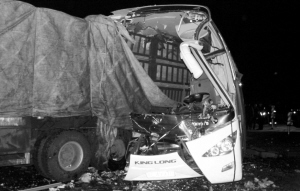 2008年11月15日16時(shí)40分,哈同公路哈爾濱依蘭段,一輛超載的金龍客車在上坡路側(cè)翻,造成11人死亡、39人受傷。