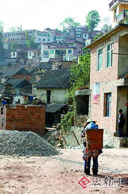 不過(guò),如今的年輕人們?cè)僖膊辉敢庾∧⒐椒苛,他們也希望住上他們?jiàn)過(guò)的像城里人一樣的樓房,可是在大山里蓋樓房得花比外面更多的錢(qián),因?yàn)榇u要從建水買(mǎi)了拉來(lái),2角多一塊的磚拉到這里,已經(jīng)快達(dá)到5角錢(qián)了,還有鋼筋、水泥等,汽車(chē)?yán)瓉?lái)后再背到家,要的錢(qián)就更多了,因此,李萬(wàn)勇家4年前蓋的樓房只蓋了底層。今年,李萬(wàn)勇家要蓋第二層了,他的活計(jì)是拌砂灰,請(qǐng)來(lái)的兩個(gè)師傅砌墻,而爹媽的任務(wù)就是用背簍將磚一塊塊地背上來(lái)。