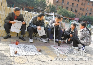 “江湖人稱李半仙,算了10多年,包準(zhǔn)!”昨日下午,渝中區(qū)解放西路66號(hào)門前,一位算命先生這樣推銷自己。旁邊五六個(gè)算命先生出來(lái)拆臺(tái):“啥子半仙,前幾個(gè)月明明還在擦皮鞋!”