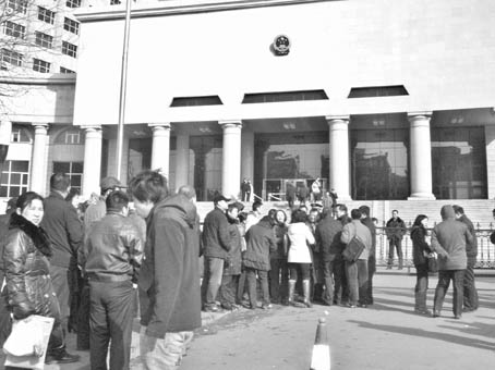 今天(24日),哈爾濱市中級人民法院不同以往。南、西、北3個門均戒備森嚴。南門人頭攢動,手拿旁聽證的人們先檢票通過院門,再經安檢進樓門,再經驗票進入法庭。西門人行稀少,人大代表們不經安檢進入法庭。北門3人通行,8時50分,齊新、劉力男、楊森3名被告人從這里被帶入法庭。