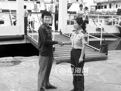 23日下午14時(shí)許,“瓊?04122”漁船駛到北緯12°、東經(jīng)110°29”海域進(jìn)行捕魚作業(yè),該船船長(zhǎng)張子長(zhǎng)發(fā)現(xiàn)前方2公里遠(yuǎn)處的海面上有一個(gè)閃光的小木筏在海面飄蕩。船長(zhǎng)張子長(zhǎng)駛船靠近一看大吃一驚,一男子虛脫地橫躺在小木筏上。小木筏的一頭有一大堆塑料瓶在太陽(yáng)照射下閃閃發(fā)亮。張子長(zhǎng)當(dāng)即叫來(lái)正在捕撈的漁民,大家齊心協(xié)力將男子抬上漁船,并把小木筏捆緊在漁船后部?吹侥凶用婺裤俱,該船長(zhǎng)趕緊找來(lái)水和食物給他吃,同時(shí)下令漁船停止捕魚趕緊回岸,搶救這名男子。在返回途中,張子長(zhǎng)撥打電話向轄區(qū)紅島邊防派出所報(bào)警求助。