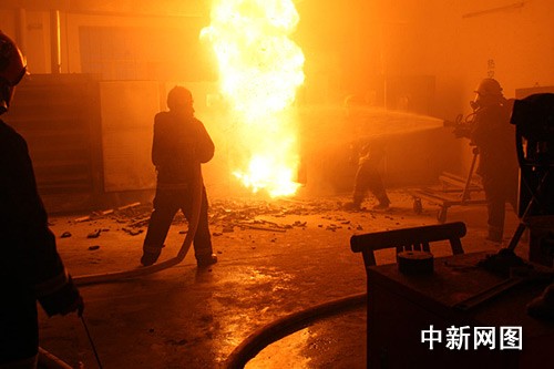 幾分鐘后,指揮員確認(rèn)粉塵密度已經(jīng)降到爆炸點以下,果斷命令戰(zhàn)斗班長用撓鉤將烘箱門緩緩打開。由于粉塵和空氣混合,在高溫的作用下從烘箱內(nèi)爆出一團(tuán)團(tuán)火焰,形狀似蘑菇云將廠房屋頂擊穿,在廠房頂部留下一個20多平米的大洞,一名戰(zhàn)士被烘燃引起的沖擊波擊倒在地,廠房內(nèi)一片狼藉。