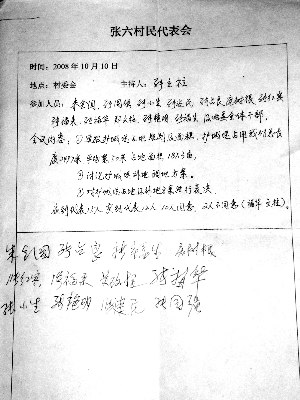 一份村民代表會議記錄上的簽名,代表說是簽到證明,鎮(zhèn)領導說是表決簽名