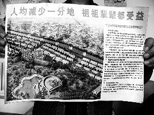 會議結束后,鎮(zhèn)領導和村干部到被占耕地的62戶村民家做工作,許以宅基地、低保等條件,勸他們簽下協議書,并按照一畝地1250元的青苗費領取補償。