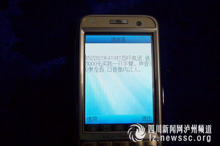 3月31日下午4點(diǎn)40分,瀘州市江陽(yáng)區(qū)北城派出所接到群眾報(bào)警稱,一家商行女老板遭遇一個(gè)帶內(nèi)江口音的男子恐嚇:“3000元買你一只手臂,等你的手臂不動(dòng)了,你就知道我是誰了!蹦壳,警方已介入調(diào)查。是為情所困,還是因財(cái)生異,亦或另有隱情?
