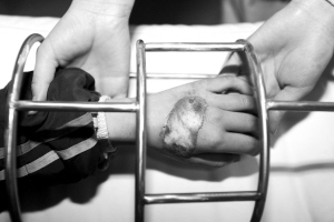 看著手中煙頭快要熄滅,坐在椅子上的胡老師用嘴狠吸一口,煙頭突然變亮了,他拿起煙頭,朝著眼前學(xué)生的手臂燙下去,一陣“吱吱”聲后,學(xué)生手臂上出現(xiàn)血淋淋的燙傷。昨晚,記者在墊江縣人民醫(yī)院燒傷科見(jiàn)到了3位被老師燙傷的學(xué)生,幾名學(xué)生竟異口同聲說(shuō):“老師是為了我們好!”