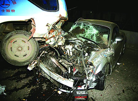 7日零時10分許,一車牌為魯BME5XX的奧迪TT跑車,在沿東西快速路由東向西方向行駛至三百惠附近時,因超車與前方一輛同向行駛的中巴車相撞,由于沖擊力巨大,兩車騰空而起飛出數(shù)米遠后墜地,落在一輛原本與中巴車并列行駛的出租車前!拔疫沒反應(yīng)過來,就聽到‘砰’一聲,兩輛車從天而降,落在我的車前方不遠處,我趕緊剎車!笔潞蠼邮芙痪{(diào)查的目擊者、一名出租車司機回憶道。據(jù)另一位目擊者王先生稱,當時他駕車以每小時90公里的速度行駛,只見一個銀灰色的影子從自己車后竄到前面,估計車速在每小時140公里以上,該車與前面的中巴相撞時,沒有采取任何減速措施,基本是踩著油門撞上的,隨后就見到一白色的影子被甩出奧迪車,摔在路上。