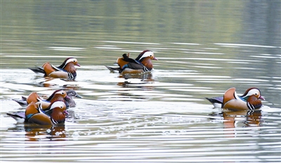 昨日,東湖“碧潭觀魚”景點(diǎn)前的一個(gè)小湖面上,數(shù)只羽毛鮮艷的水鳥游弋在十多只游船之中,引起了游客們關(guān)注(上圖)。武漢觀鳥會會員朱小明端著望遠(yuǎn)鏡邊觀察邊說:“這就是曾在武漢消失30年的鴛鴦,我們連續(xù)3年春天在這片湖面上發(fā)現(xiàn)它們的身影!