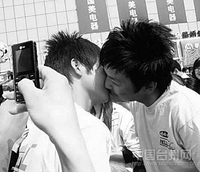網(wǎng)友Luochen725發(fā)貼:前天下午,我剛好在路橋富仕廣場(chǎng)附近逛街,聽(tīng)說(shuō)有接吻大賽,就過(guò)去湊熱鬧。不看不知道,一看不得了,兩個(gè)男人在接吻,汗,有兩對(duì),頓時(shí)被雷倒了!他們還按主持人的要求擺不同的姿勢(shì),熱吻了一個(gè)多小時(shí),我暈。∏閭H參加活動(dòng)可以接受,不過(guò)對(duì)我來(lái)說(shuō),這么多人看著,覺(jué)得比較怪。而兩個(gè)大男人這么大庭廣眾之下接吻,我就真的是無(wú)語(yǔ)了。
