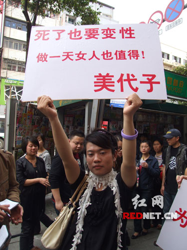 前不久申清清在接受記者采訪時曾經表示,曾在江西舉過關于變性的牌子,并且在江西有醫(yī)院愿幫助他完成手術,但具體事宜仍未敲定。既然馬上要做手術了,為何還要“故技重施”呢?申清清說,此次再來長沙舉牌,一方面希望通過“現身表演”,呼吁社會能夠容忍并接受變性人的存在,另一方面,希望能有更多的醫(yī)院能夠關注他和美代子,并能夠真切地表態(tài),可以幫助他們實現“女人夢”。