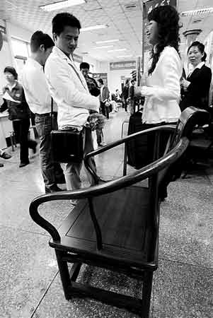 昨日,在武昌起點人力資源市場舉辦的湖南商會專場招聘會上,一招聘單位將一把新椅子放在招聘展位前,寓意虛位以待、求賢若渴,期待能招到更多的實用人才。(記者 金思柳 通訊員 孫文茹 攝)(記者 齊翔 實習(xí)生 孫廣茹 周琴)