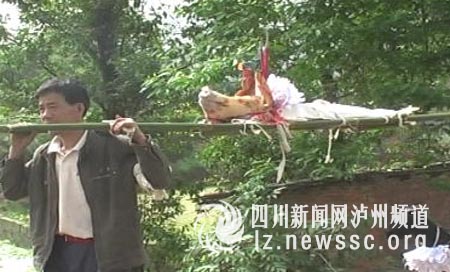 記者好奇地詢問了其中一位參加喪禮游行的村民。該村民說,“這是喪事,不過不是一般的喪事,而是喜喪。這是他們當(dāng)?shù)氐牧?xí)俗,只要是村里德高望重、壽終正寢的老人就可以辦這樣的喪事,意為圓圓滿滿地結(jié)束了一生。今天是喪禮的第二天,現(xiàn)在進(jìn)行的游行叫做“揚名”,用意是要讓沿途的人都知道老人壽終的消息,同時也讓人們知道老人的兒女是何等孝順,這樣喜喪才能風(fēng)風(fēng)光光。游行中所抬的紙轎子叫做‘靈轎’,當(dāng)?shù)仫L(fēng)俗認(rèn)為可以將壽終者的靈魂通過法式寄放在這樣的轎子里。待游行結(jié)束,就要開始進(jìn)行‘飄燈’儀式了,將紙燈放入河中,隨波漂流,以此寄托對壽終者的思念!