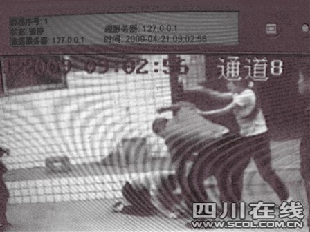 記者從錄像中看到,事情已發(fā)生約10分鐘左右時(shí),受傷的田曉蘭坐在辦公樓大門口哭泣。突然,一個(gè)蓄平頭的高個(gè)子沖過(guò)來(lái),一拳打在她頭上,隨即又揪住田頭發(fā),拉到路中間,將其摔倒在地,用腳踢頭部,然后又拳腳相加,任憑旁邊另外一位女收費(fèi)員如何勸解,絲毫沒(méi)松手。其間,一個(gè)穿制服的男子過(guò)來(lái)勸解,但該男子也仍不予理會(huì),其粗暴令人震驚。