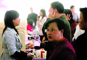 “你好,可以和你聊聊嗎?”這樣的開場白在昨日聽得最多。當(dāng)看到自己心儀的對象后,大多男女都會大方地向?qū)Ψ桨l(fā)出邀請。現(xiàn)場的展板上張貼了每個人的詳細(xì)資料,方便大家“按圖索驥”。