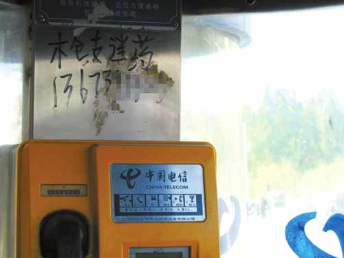 晚報嗎?我們附近的電話亭上有人涂寫非法廣告,上面甚至聲稱出售‘槍支迷藥’,你們來看一下吧!比涨,住在團結(jié)新村的市民王先生給本報打來熱線反映。