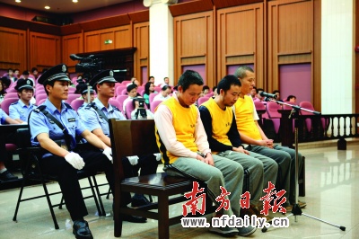 昨日上午,備受關(guān)注的廣州“瘦肉精”案在白云區(qū)法院一審公開開庭審理(如圖,通訊員供圖)。據(jù)白云區(qū)檢察院指控,鄧云高、劉訓(xùn)堯、肖學(xué)慶3名被告人被控涉嫌銷售有毒、有害食品罪。