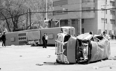 因大巴車司機(jī)也在車禍中受傷,記者沒(méi)能向他核實(shí)車禍起因。目前,警方已經(jīng)介入,車禍的真正原因正在進(jìn)一步調(diào)查中。 (本報(bào)主任記者 劉強(qiáng) 實(shí)習(xí)生 王健 攝影 主任記者 沈生)