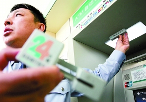 昨天上午,朝陽公安分局內(nèi)保處王警官介紹,4月28日20時30分,市民張女士在位于亞運村附近的一家中國農(nóng)業(yè)銀行支行某分理處自助銀行辦理取款業(yè)務(wù),發(fā)現(xiàn)三臺提款機僅有一臺可用,另外兩臺的屏幕都被A4紙貼上,寫著“本機正在升級中,請見諒”,當張女士打算在唯一能用的機器上取款時看到,這臺機器上方多了一個方形盒子,下方的插卡口處套了一個標有“24小時自助銀行服務(wù)”的卡槽,張女士覺得可疑,立即向銀行和公安機關(guān)報警。