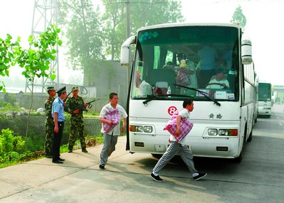 現(xiàn)場指揮部隨即成立,合力研究警戒轉(zhuǎn)移方案,決定再次對50名囚犯的身體狀況進行仔細檢查。與此同時,增強警戒,聯(lián)系客車處置事故,調(diào)查取證,疏散人員,后勤保障,現(xiàn)場處險工作進一步鋪開。30多名增援的獄警和武警官兵一跳下車,就立即形成了一道堅不可摧的人墻。
