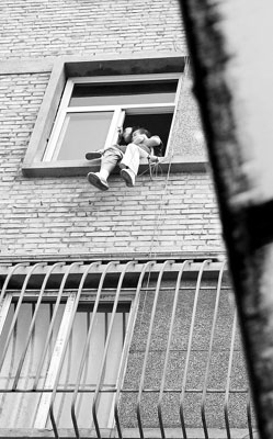 昨日下午,在省財政廳家屬院內(nèi),一年輕女子懷抱兩歲的孩子爬上窗臺欲跳樓。經(jīng)過民警及其家人近一個小時的勸導(dǎo),該女子最終抱著孩子返回屋內(nèi),但她的這種沖動之舉,受到了不少市民的譴責(zé)。