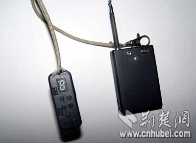 4人交待,“遙控器”名“鎖車干擾器”(如右圖),是上月從廣東買回的,準(zhǔn)備在武漢“大干一場(chǎng)”。當(dāng)日,他們用“鎖車干擾器”已打開(kāi)2輛轎車車門,車內(nèi)沒(méi)有財(cái)物;開(kāi)第3輛車車門時(shí)被抓。