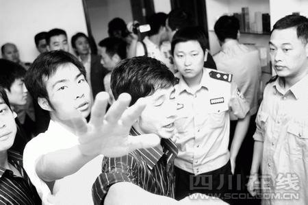 當(dāng)民警指出媒體有采訪的權(quán)利,并要求在場人員配合執(zhí)法時(shí),現(xiàn)場逐漸恢復(fù)了平靜,執(zhí)法人員開始逐一登記在場人員的身份證。就在這時(shí),一名戴眼鏡、穿西裝的男子出現(xiàn)在房間內(nèi),他表現(xiàn)得非常不爽:“我們哪里違法了嘛?”對此,執(zhí)法人員告訴他涉嫌傳銷,正在調(diào)查,要求配合。但該男子態(tài)度非常強(qiáng)硬地告訴身邊人員,他們所從事的活動并沒有違法。見記者拍照,他再次召集人員強(qiáng)行阻止拍攝。民警要求他配合執(zhí)法,并出示公民身份證,“我是一個(gè)公民,有權(quán)不出示身份證!边@名梁姓男子道。記者隨后得知他是成都某大學(xué)大三的學(xué)生。
