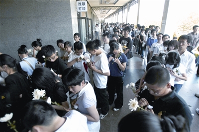 10點(diǎn)10分,譚卓的一個(gè)大學(xué)同學(xué)來(lái)到譚媽媽的身邊,捧出準(zhǔn)備好的花束,躬身獻(xiàn)上。他不愿意透露姓名,只是說(shuō);“我很了解譚卓,媽媽的禮物不能少!”