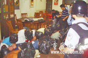 “白天搶,晚上偷,難道不睡覺(jué)?”黃桷坪派出所副所長(zhǎng)張翼和辦案民警分析認(rèn)為,再怎么瘋狂,人總要休息的。于是,九龍坡區(qū)警方調(diào)集40位民警,于7日早上突襲南紀(jì)門(mén)的那家小旅館,正在熟睡的33個(gè)犯罪嫌疑人一網(wǎng)打盡,犯罪嫌疑人中最小的15歲,最大的30歲。