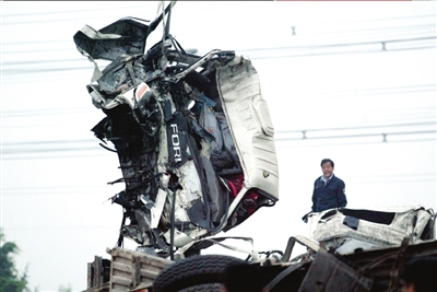 凌晨4點左右,現(xiàn)場只剩下4輛被毀嚴重的事故車,F(xiàn)場散落著飲料瓶、家具零件和成卷的鋼索,這些都是大貨車上裝載的貨物。4輛貨車駕駛室均嚴重變形,一輛大貨車的駕駛室被燒成了空殼。