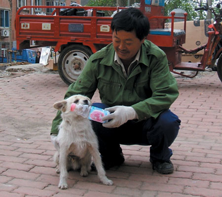 這只流浪的小狗叫小丑兒,原來的主人住在星海街,因?yàn)榘峒叶鴮⑺z棄了。今年4月大,連降了一場(chǎng)很大的雨雪,因天氣的原因,收廢品的王先生沒有出門,在家中把幾天收的廢品整理一下。在搬廢品的時(shí)候,王先生突然聽到類似呻吟的聲音,于是就順著聲音找去,看到了一只白色的小狗蜷縮在廢品邊上,瑟瑟發(fā)抖,無精打采的,眼睛里流露出求助的神情。王先生把它抱進(jìn)屋,并給它吃的喝的。當(dāng)天氣暖和時(shí),王先生便把小狗送到了門外,準(zhǔn)備放走,可這只小狗怎么也不肯離開王先生。從此,王先生出去收廢品的時(shí)候,走到哪里,小丑兒便跟到哪里,還把街上被人遺棄的瓶子,撿到王先生的跟前。后來,王先生從鄰居們那得知小丑兒的經(jīng)歷,便把它留在了自己身邊。