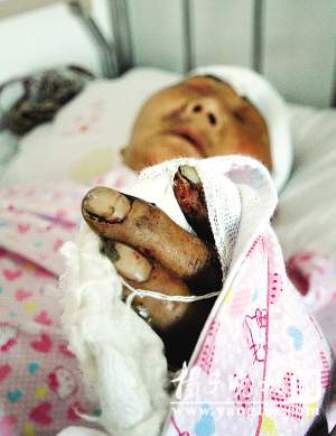 在南京軍區(qū)總醫(yī)院的一張病床上,記者見(jiàn)到正在輸液的李步琴老人,她頭部、手部纏著厚厚紗布。記者了解到,不連頭上的傷,老人手指、鎖骨、肋骨五處骨折,還餓了4天,老人現(xiàn)在已經(jīng)恢復(fù)了神志,思維敏捷,不能不說(shuō)是個(gè)奇跡。老人告訴記者,5月19日傍晚她和工程隊(duì)開(kāi)挖土機(jī)的吵了一架,因?yàn)樗麄兺趬牧俗约旱牟说。?dāng)天晚上8點(diǎn)多鐘,突然有個(gè)人沖進(jìn)她居住的泵房,進(jìn)門(mén)就跟她要錢(qián)。剛開(kāi)始她以為遭遇劫匪,無(wú)奈之下,只好從口袋里掏出一張皺巴巴的百元鈔票,可對(duì)方拿到錢(qián)后,仍不罷休,竟然揚(yáng)言要火燒房子。還不問(wèn)青紅皂白,甩起一根棍子就朝她頭上夯,她雙手抱住頭,棍棒繼續(xù)擊打在她的頭上、身上,直到她昏死過(guò)去。老人居住的地方?jīng)]有水電,因此當(dāng)時(shí)光線黑暗,她沒(méi)有看清楚對(duì)方什么樣子,但是她記得對(duì)方毆打她的時(shí)候曾經(jīng)問(wèn)過(guò)她:“以后還給不給開(kāi)路?”這個(gè)“開(kāi)路”是什么意思?老人解釋說(shuō),她的菜地占了挖掘機(jī)的路,她曾經(jīng)與對(duì)方交涉過(guò)多次。
