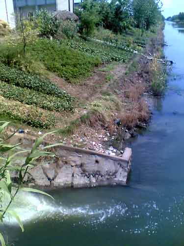 呂城鎮(zhèn)自來(lái)水廠的取水口就在大運(yùn)河,飯店老板告訴記者,前一段時(shí)間受污染的那個(gè)取水口在溝頭村的戰(zhàn)備河,那里有個(gè)水廠的分廠,供應(yīng)當(dāng)?shù)匕傩沼盟。在?zhàn)備河的盡頭,記者找到了這個(gè)分水廠,發(fā)現(xiàn)其規(guī)模只能用微型來(lái)形容,和緊靠的排灌房差不多大小,說(shuō)它是個(gè)自來(lái)水生產(chǎn)作坊倒更合適,實(shí)在想像不出面對(duì)長(zhǎng)期被污染的水域,它如何做到水質(zhì)的凈化飲用。