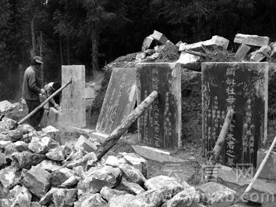 在進(jìn)入林區(qū)的公路上,路旁堆滿了一堆堆準(zhǔn)備運(yùn)入林區(qū)修建墳?zāi)沟氖,一些地方還堆放著打磨好的碑板和精制的料石。