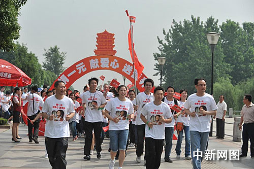 當日,湖北籍奧運冠軍楊威、高崚的帶領(lǐng)下,近300名武漢市民組成“漢口”、“漢陽”、“武昌”三個愛心方陣,手持“捐一元,獻愛心送營養(yǎng)”的小紅旗,身著統(tǒng)一的獻愛心T恤,沿著漢口江灘跑步前進,沿途不斷地向周邊行人和游客發(fā)放愛心貼紙,呼吁更多的武漢市民參與到該項活動中來。