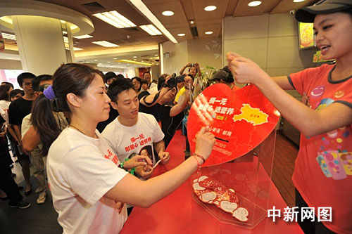 長跑活動結(jié)束后,楊威和高崚一起來到附近開設(shè)募捐箱的肯德基餐廳,帶頭捐款,并帶動了眾多市民加入該行列。該項募捐活動自今日起將持續(xù)兩周。