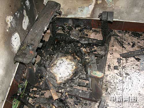 房子坐北朝南,有獨立樓梯,樓下有四間,樓上兩間外加一個平臺。房子失火后一片狼藉,面目全非,污水橫流,到處黑乎乎,雜亂無章。