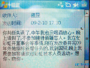 帖中寫道:樓主數(shù)日前拾得手機(jī)一部,經(jīng)查看后發(fā)現(xiàn),機(jī)主為江蘇某市經(jīng)濟(jì)開發(fā)區(qū)一位王姓女局長(zhǎng)。該女局長(zhǎng)同時(shí)與多位男士長(zhǎng)期保持著曖昧關(guān)系。隨帖還貼出了多張手機(jī)中的短信翻拍圖片,清晰可見其曖昧文字內(nèi)容,同時(shí)也可發(fā)現(xiàn)其發(fā)短信的時(shí)間跨越了2006~2009年。