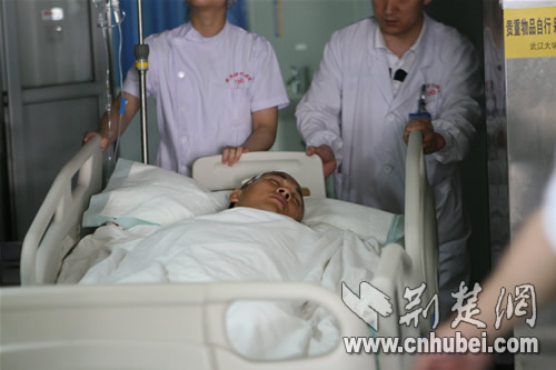3日下午3時左右,在武大解救人質(zhì)事件中受傷的特警譚紀雄被緊急送到中南醫(yī)院急救。經(jīng)該院腦外科等10多位專家數(shù)小時的緊急搶救,順利取出顱內(nèi)幾十塊碎彈片以及大量顱骨碎片。晚上8時,手術(shù)結(jié)束,譚紀雄隨后被送進重癥監(jiān)護室。
