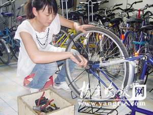 租出去的自行車損壞率一直比較高,小姚又開展了修車服務(wù)。小姚是家里唯一的女孩,在家里很受寵愛,對于一個從來沒做過體力活的女孩來說,修車的難度是可想而知的。小姚在店面開張之前,在一次回家的路上,碰到了一位修車的老師傅,便向其拜師學(xué)藝,把老師傅嚇了一跳,當(dāng)聽說她還是個在校大學(xué)生時,更是連連拒絕。老師傅看她不死心,讓她去給旁邊一輛自行車“拆胎”,女孩子力氣小,沒經(jīng)驗,費(fèi)盡九牛二虎之力,還是沒拆下來,手都磨破了,但她還是不放棄,她的執(zhí)著感動了老師傅,整整一個下午,老師傅將一些修車要領(lǐng)和經(jīng)驗都傳授給了這個素不相識的女孩。
