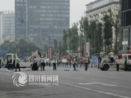 記者在現(xiàn)場未見到救護車輛,F(xiàn)場有近10輛消防車,交警正在疏導(dǎo)交通,成都主干道人民南路二段交通并未中斷。