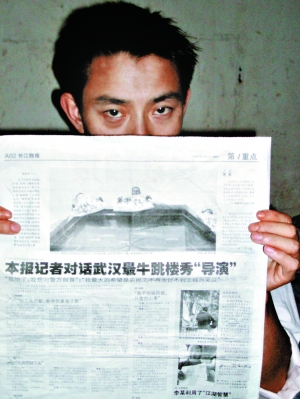 28歲,湖北孝感人,長期在漢口建筑工地務工,做過小包工頭,因大包工頭欠薪,他曾于2007年底,站在高樓頂討薪,成功拿到欠款。如此討薪奏效后,從2008年初到今年5月,他又幫助其他農(nóng)民工策劃多起“跳樓討薪”事件,被當?shù)孛襟w稱為武漢最牛跳樓秀“導演”。