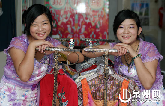 在泉港“鏡花緣”旗袍店內(nèi),記者見到了這對“雙胞胎”。乍一看,不了解“內(nèi)幕”的人還以為她們是孿生姐妹呢。