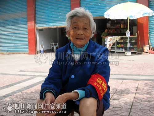 昨日中午,在廣安市城南五福西路出現(xiàn)了這樣的一幕:烈日下,一位頭發(fā)全白、穿著樸素、卷著褲管、手拿蒲扇的老太坐在街道邊的樹蔭下,袖子上戴著一個(gè)鮮紅的袖章,上面寫著“治安聯(lián)防”。當(dāng)時(shí)氣溫在30度左右,雖然是在樹蔭下,但是還是能感受到那股讓人煩躁和熱烘烘的暑氣。出于好奇,記者便上前問了個(gè)究竟。
