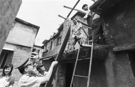 “這處違建不能一拆了之”,楊敏與隊員們商議,共同捐資2000元,買了磚石砂料。昨日,宗關(guān)街城管執(zhí)法中隊6名隊員來到現(xiàn)場,依法拆除違建的亭子間,同時運砂砌磚,改造加固房體,修建隔雨層,不料被街坊鄰居舉報。