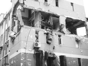 事故發(fā)生地位于青浦城區(qū)中心。記者昨晚趕到現(xiàn)場(chǎng)時(shí),小區(qū)已被警方封鎖,消防、煤氣、電力、水務(wù)等部門已趕到現(xiàn)場(chǎng)參與救險(xiǎn)。事發(fā)的章浜新村10號(hào)樓雖位于沿街第二排,但馬路上仍散落著附近樓房?jī)?nèi)被震碎的大量玻璃碎渣。