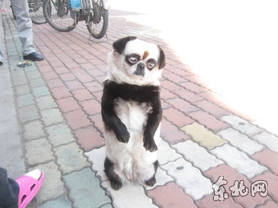 兩只拳頭大小的黑眼圈,短小的黑耳朵,圓圓的臉,肥身體,四肢及胸部為黑顏色,其余毛色均為白色。從遠(yuǎn)處慢騰騰的走過(guò)來(lái),人們都以為這是一只憨態(tài)可掬的小熊貓?墒聦(shí)是,這是一只被主人染成熊貓模樣的小狗。